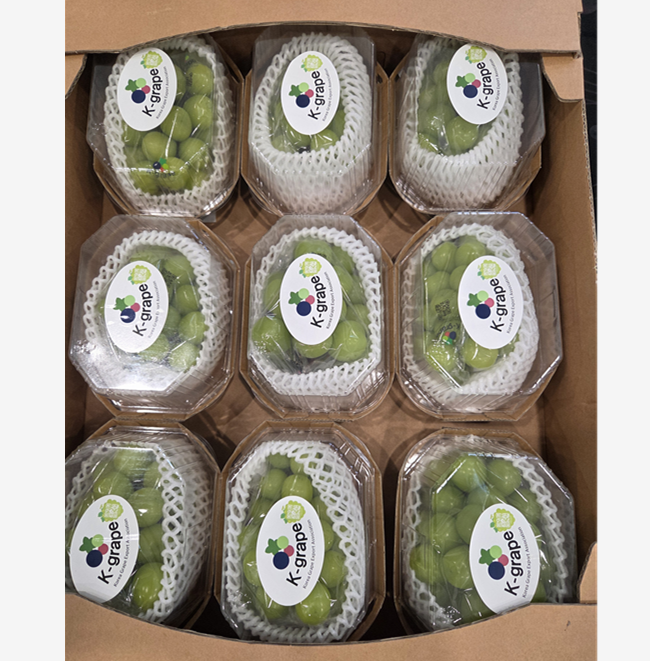 Korean premium Shine Muscat grapes are known for their high sugar content, crisp texture, and edible skin. Only carefully selected grapes are packed in a 450g portion.